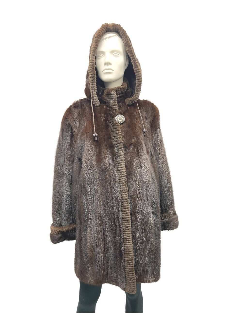 Dyed mahogany mink coat with detachable hood – 992433
