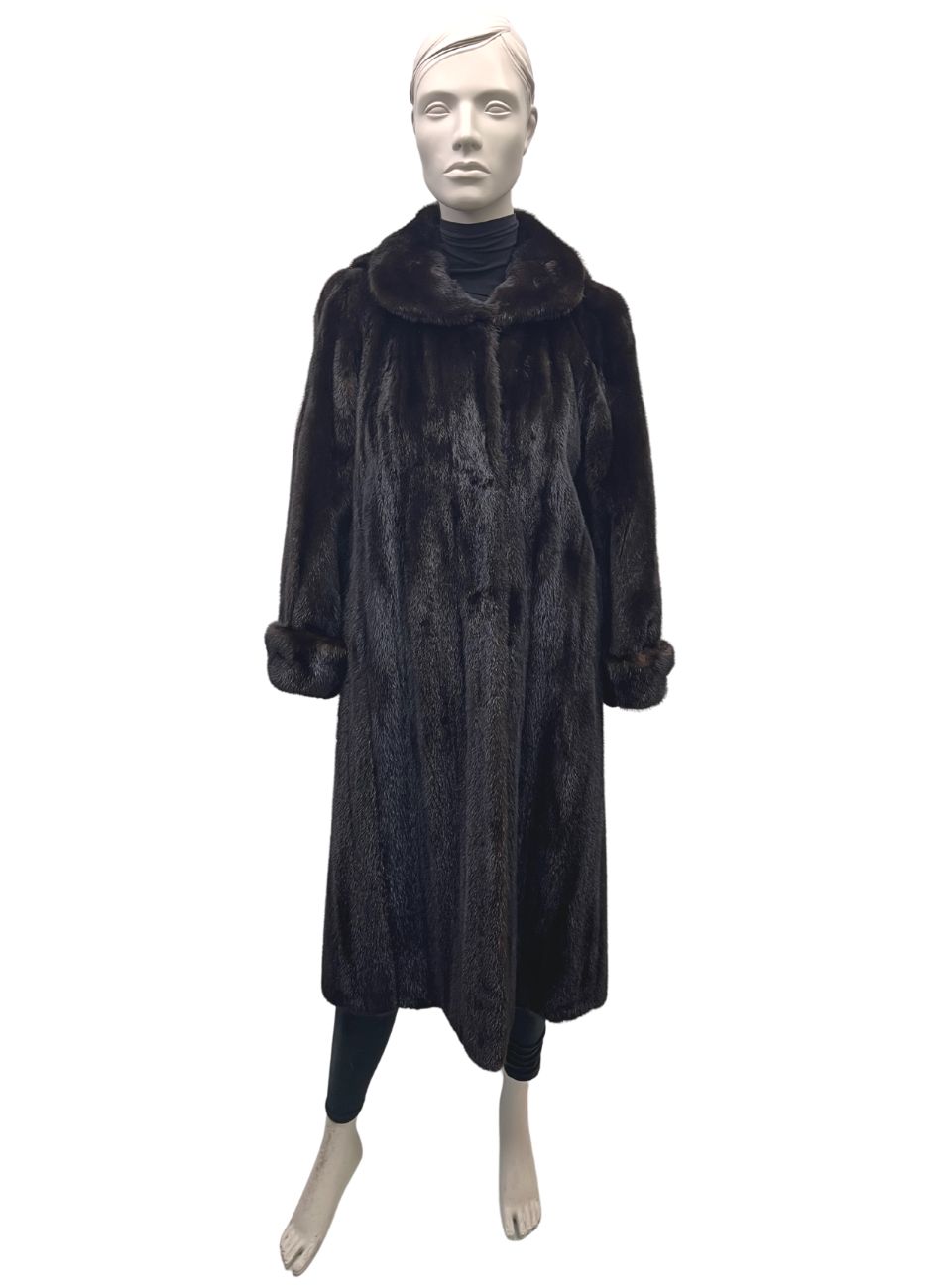 Black mink coat with spaghetti pattern and fox collar – 8595