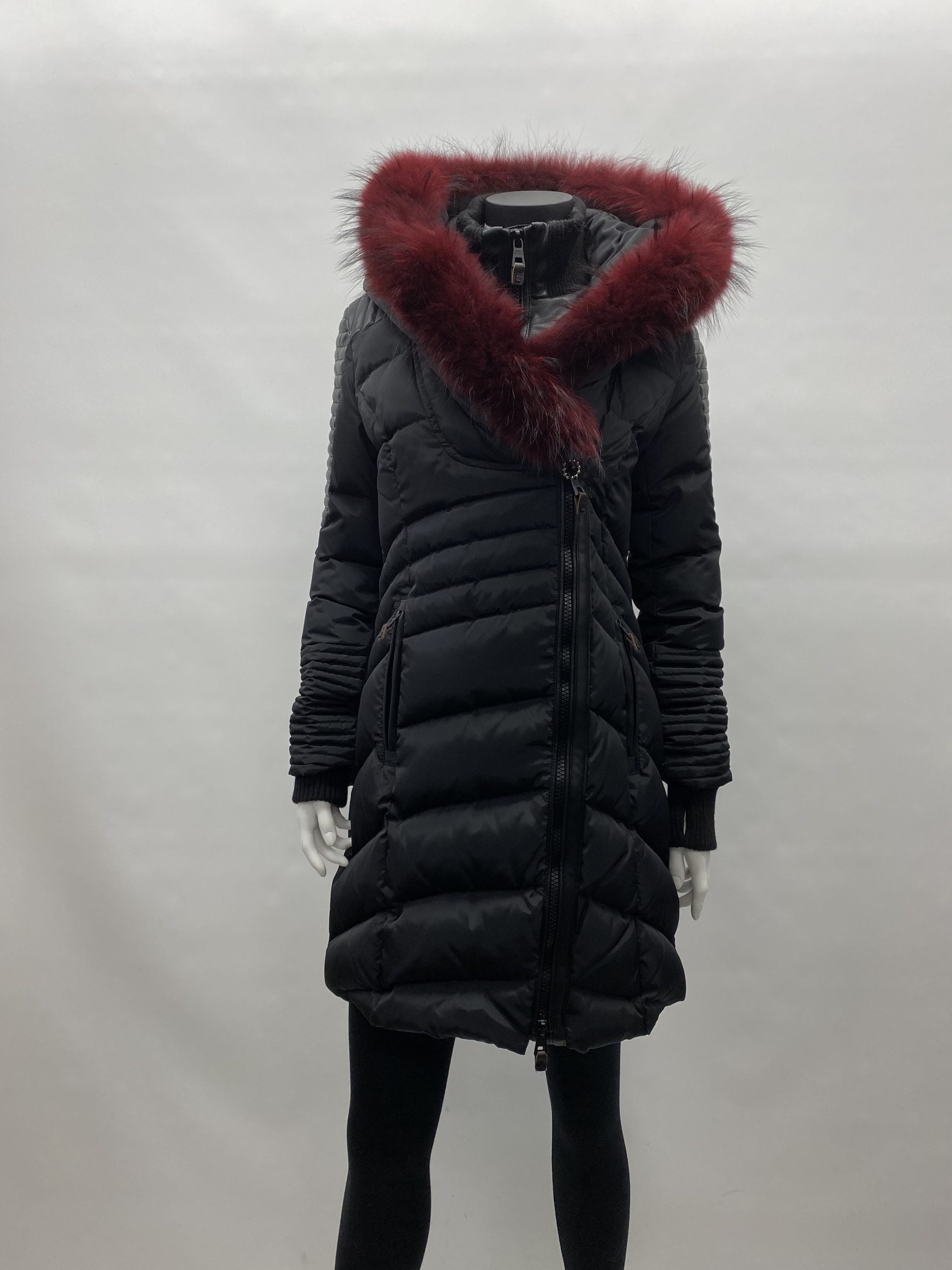 Designed in Montreal, Canada, Nicole Benisti is for the modern woman, exuding effortless elegance, sophistication and glamour. Combining functionality and style, Nicole Benisti offers interchangeable designs that capture the essence of contemporary fashion. Presenting a unique originality that blends luxury and streetwear, each model offers avant-garde versatility that establishes sleek, elegant pieces that are perfect for moving from day to night and week to weekend.- Technical coat and hood trimmed with burgundy-dyed Finnish cat. This item is available in black