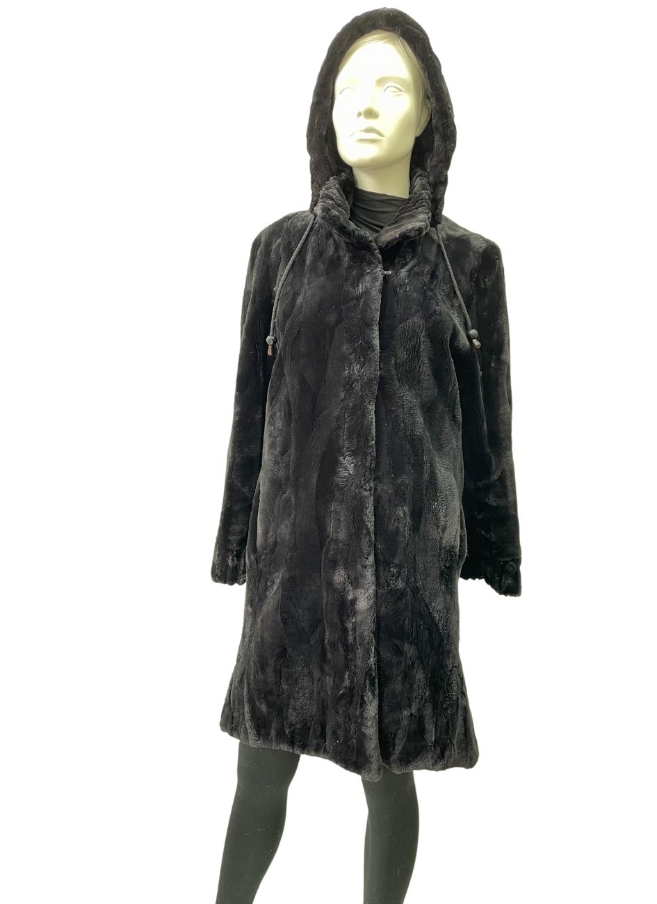 / Onyx shaved beaver coat with detachable hood – 8343