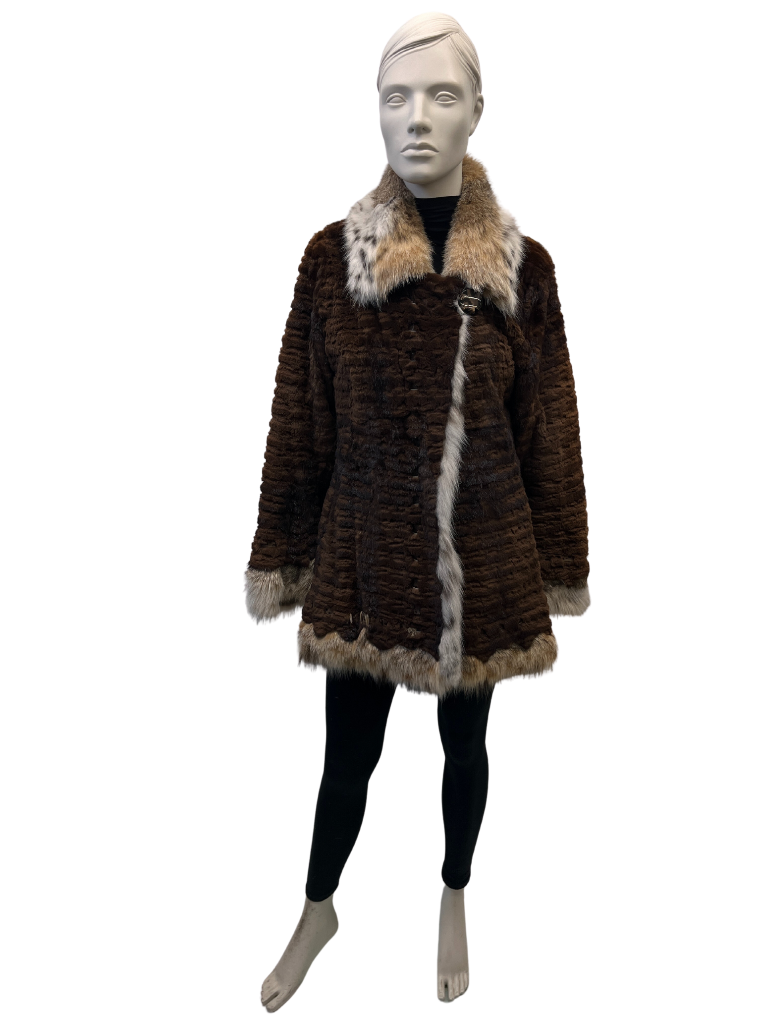 / Textured pastel mink coat with lynx collar – 8556