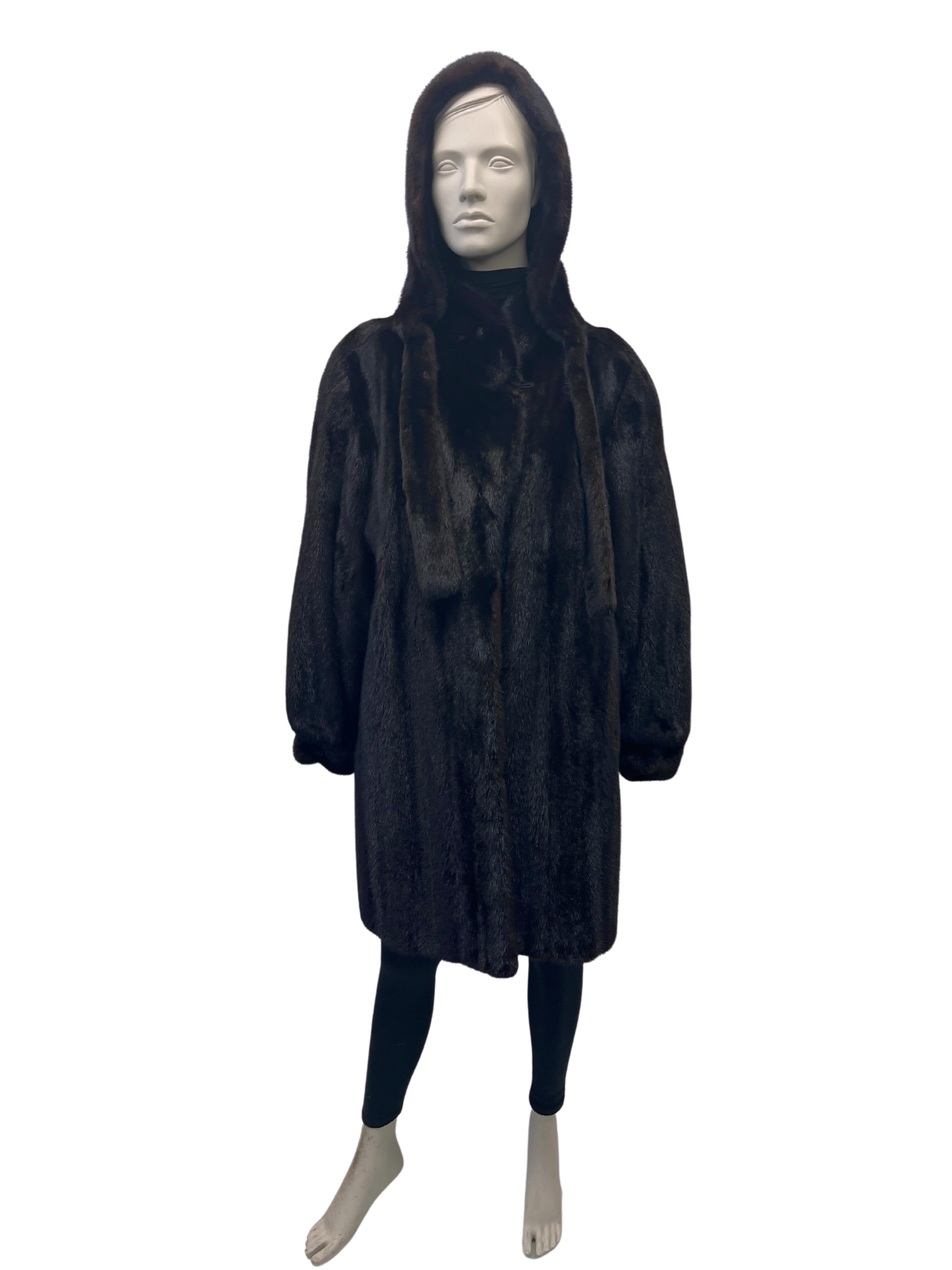 Manteau de vison dark ranch et capuchon détachable – 8550