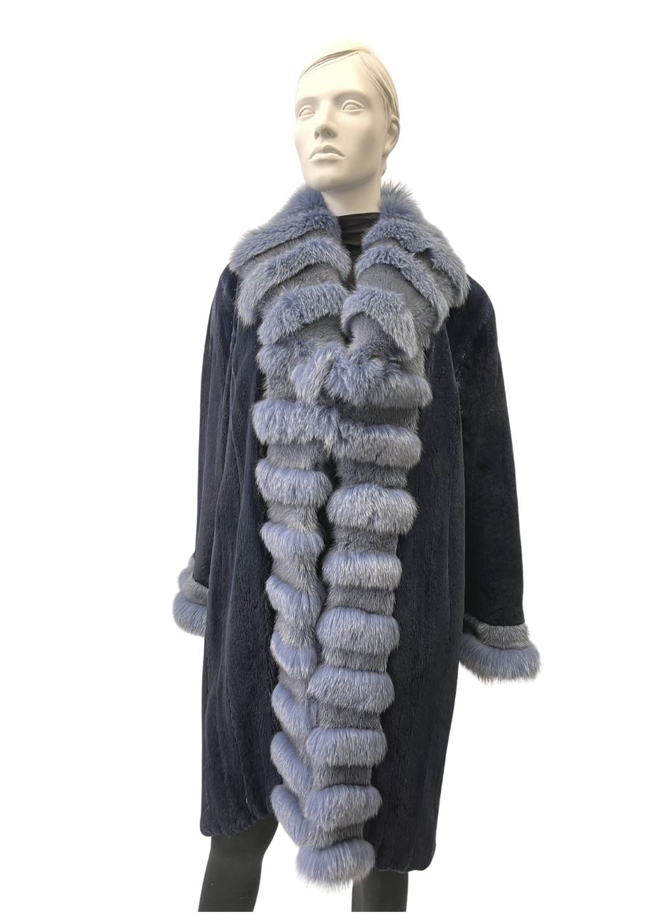 / Blue dyed shaved mink coat with fox trim – 992640