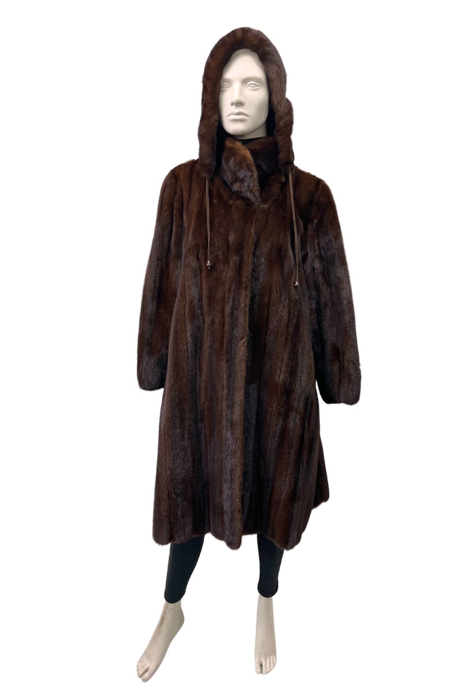 Female mahogany mink coat with detachable hood – 8522