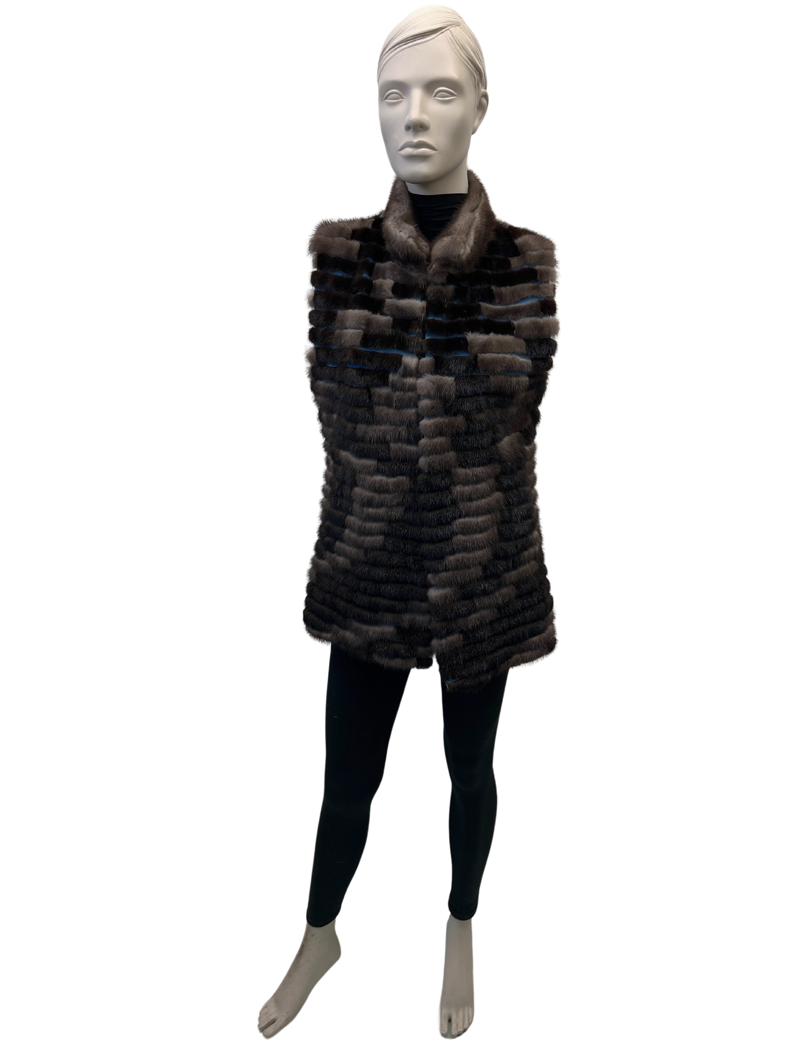 / Iris and brown mink sleeveless jacket with blue leather – 8564