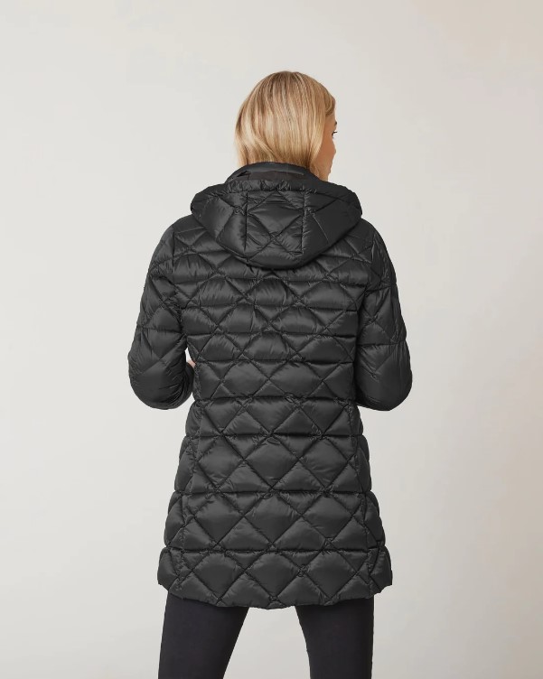 Lightweight mid-season down jacket from Junge with removable two-way zip hood.