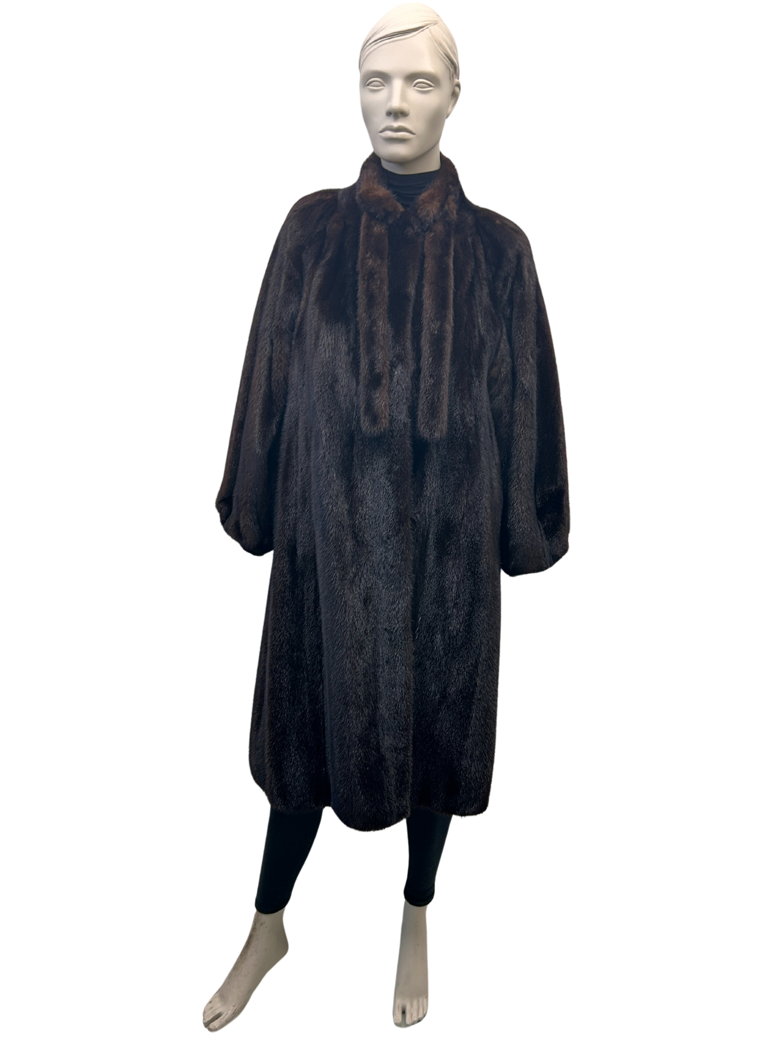 / Long brown mink coat with tie – 8596