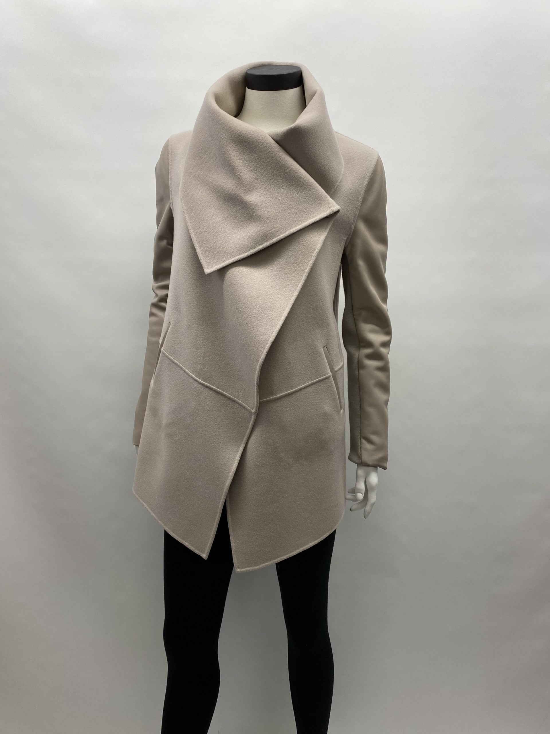 The Mackage outerwear line is recognized as one of the most prestigious contemporary coat lines in the world. Mackage collections are composed of the finest leathers, comforters and wools cut with meticulous attention to detail. The vision is clear: a persistent commitment to quality, and the perfect balance between style and function. – Wool coat with leather sleeves. This item is available in the color sand