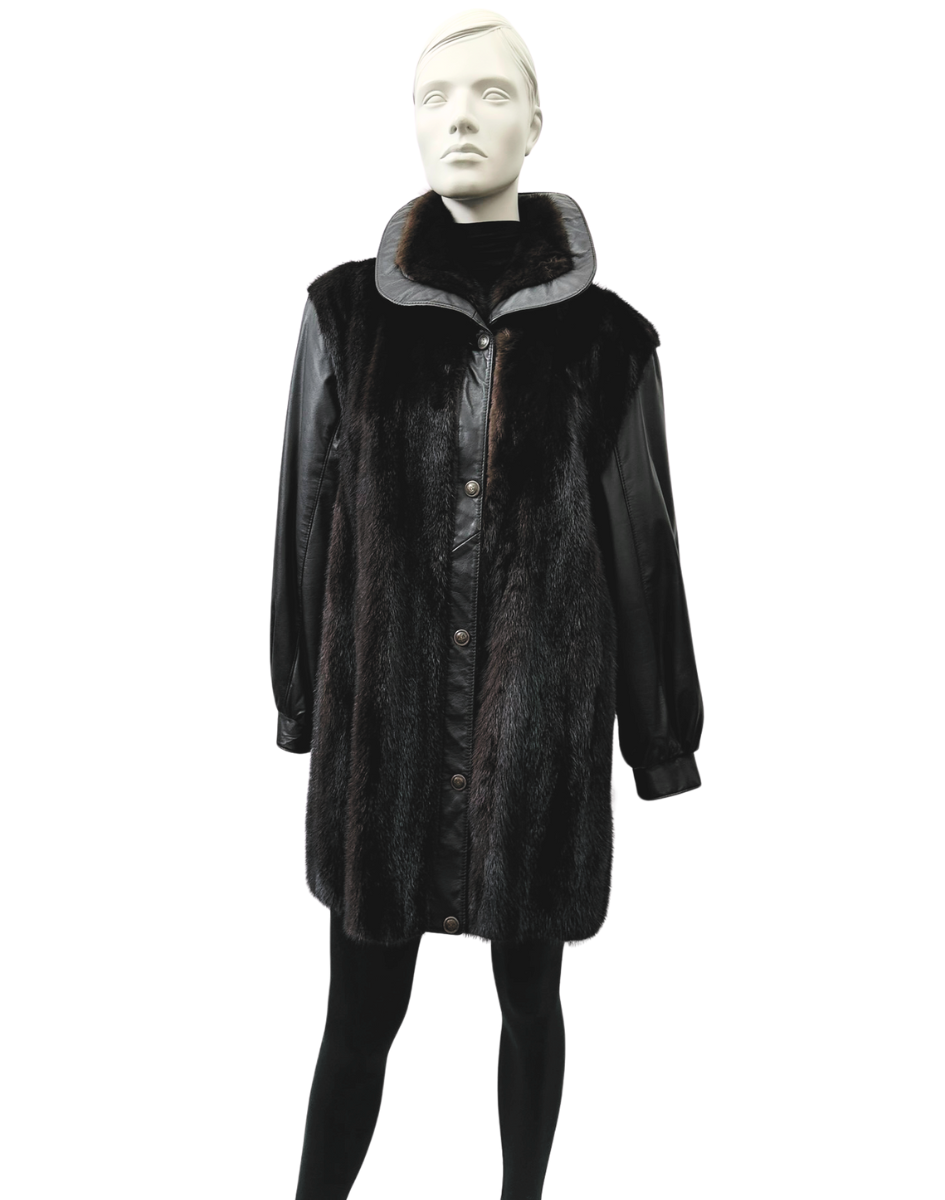 Manteau de vison acajou et cuir brun – 8673