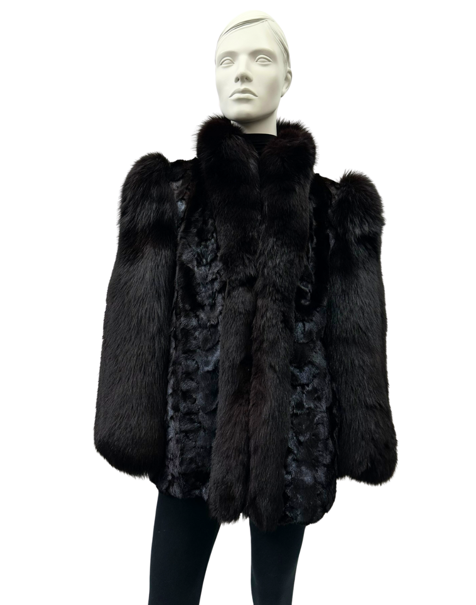 Manteau têtes de vison manches de renard noir - 8647 quantity
