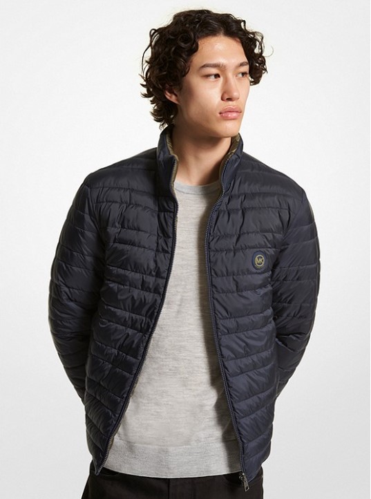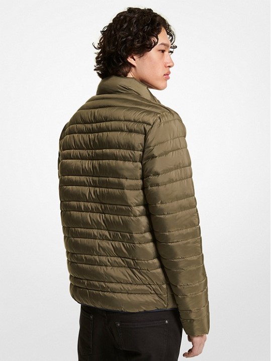 Stay warm on chilly nights with this down jacket featuring two practical pockets.