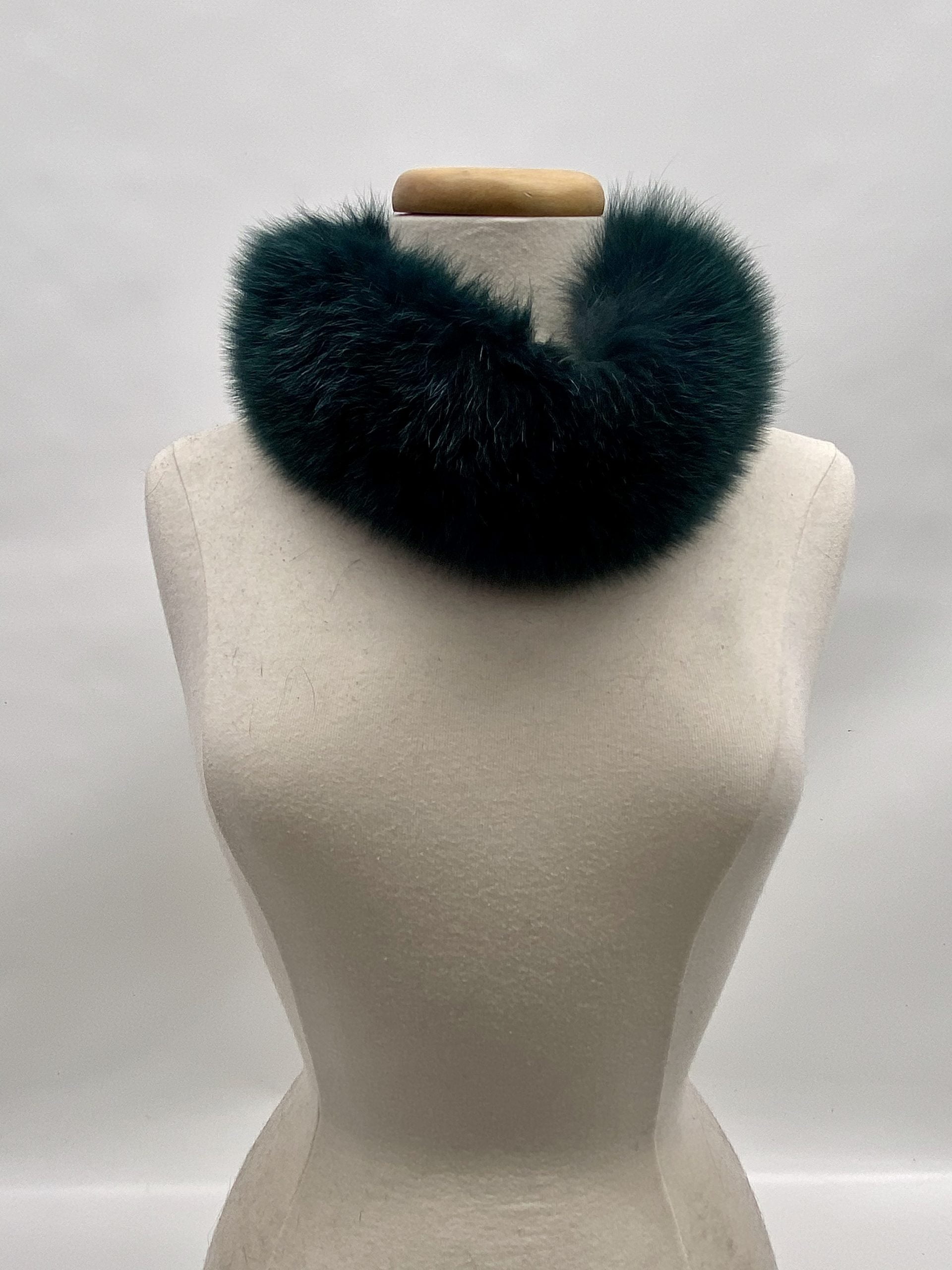 Bandeau de renard teint vert. Cet article est muni d’un velcro au dos pour ajustement
