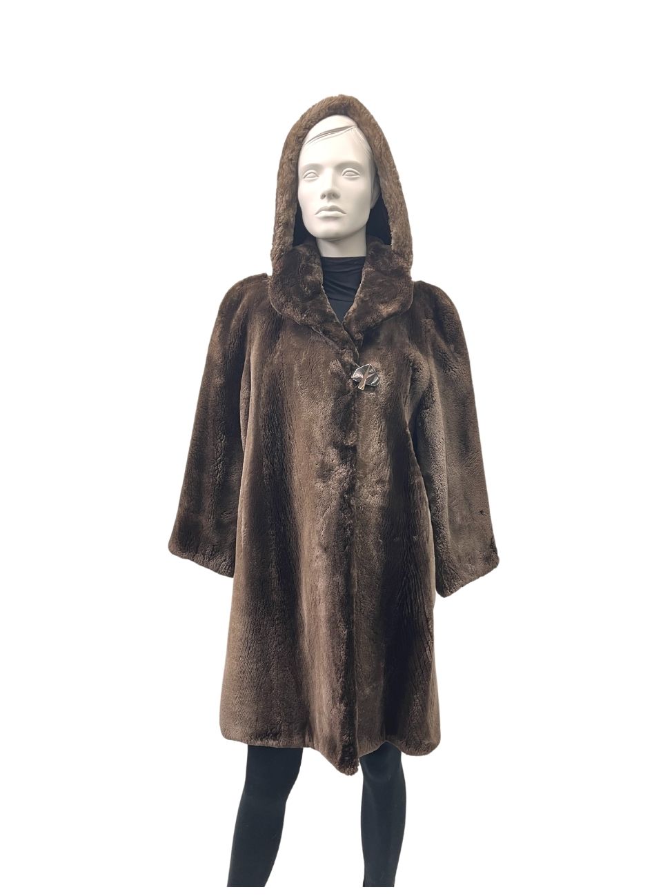 Manteau de castor rasé et capuchon détachable – 991842