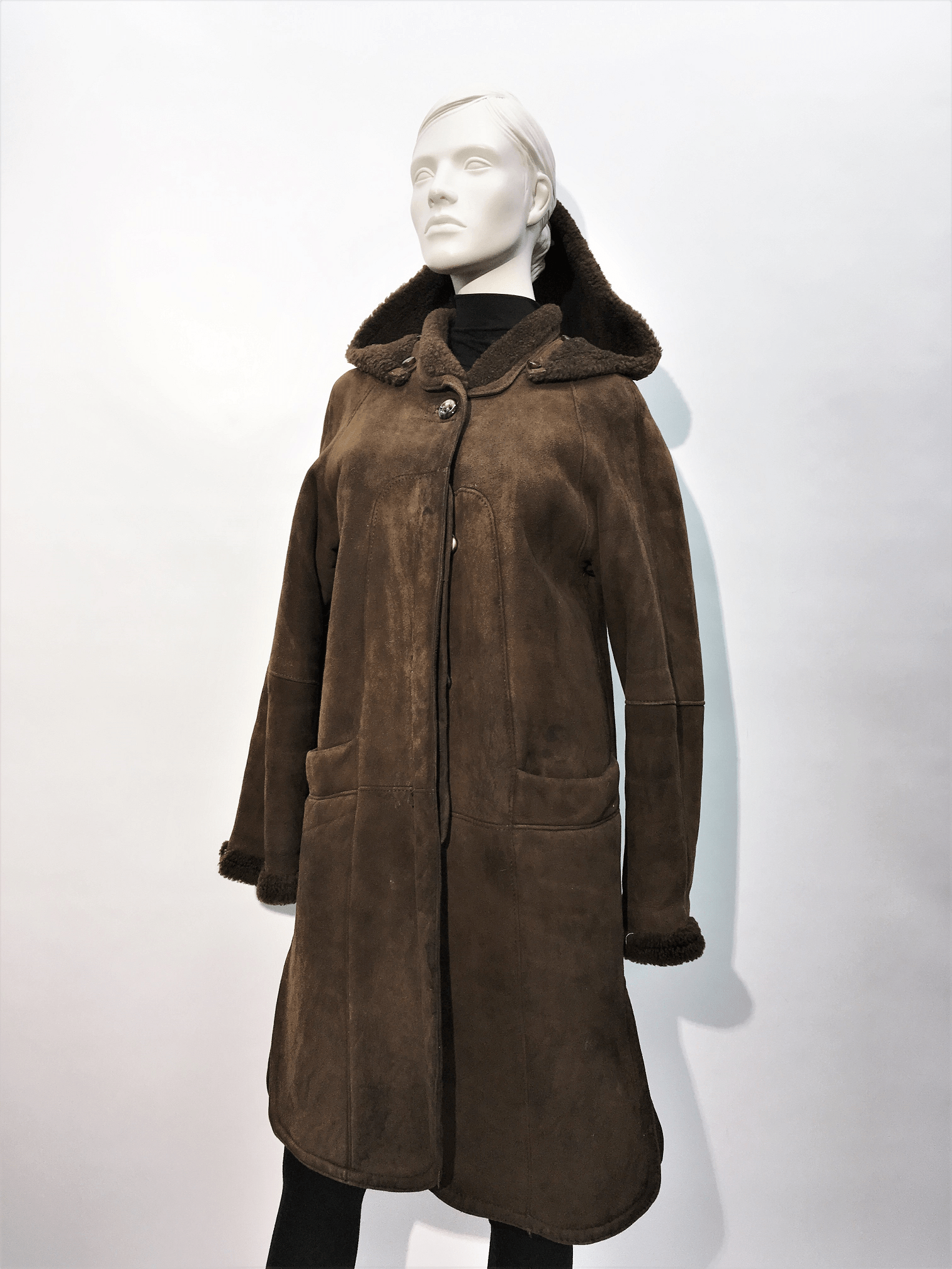 Manteau de mouton retourné brun et capuchon détachable – 7697