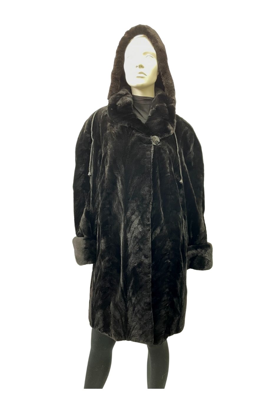 Manteau de pattes de vison rasé noir avec capuchon détachable – 8336 VENDU