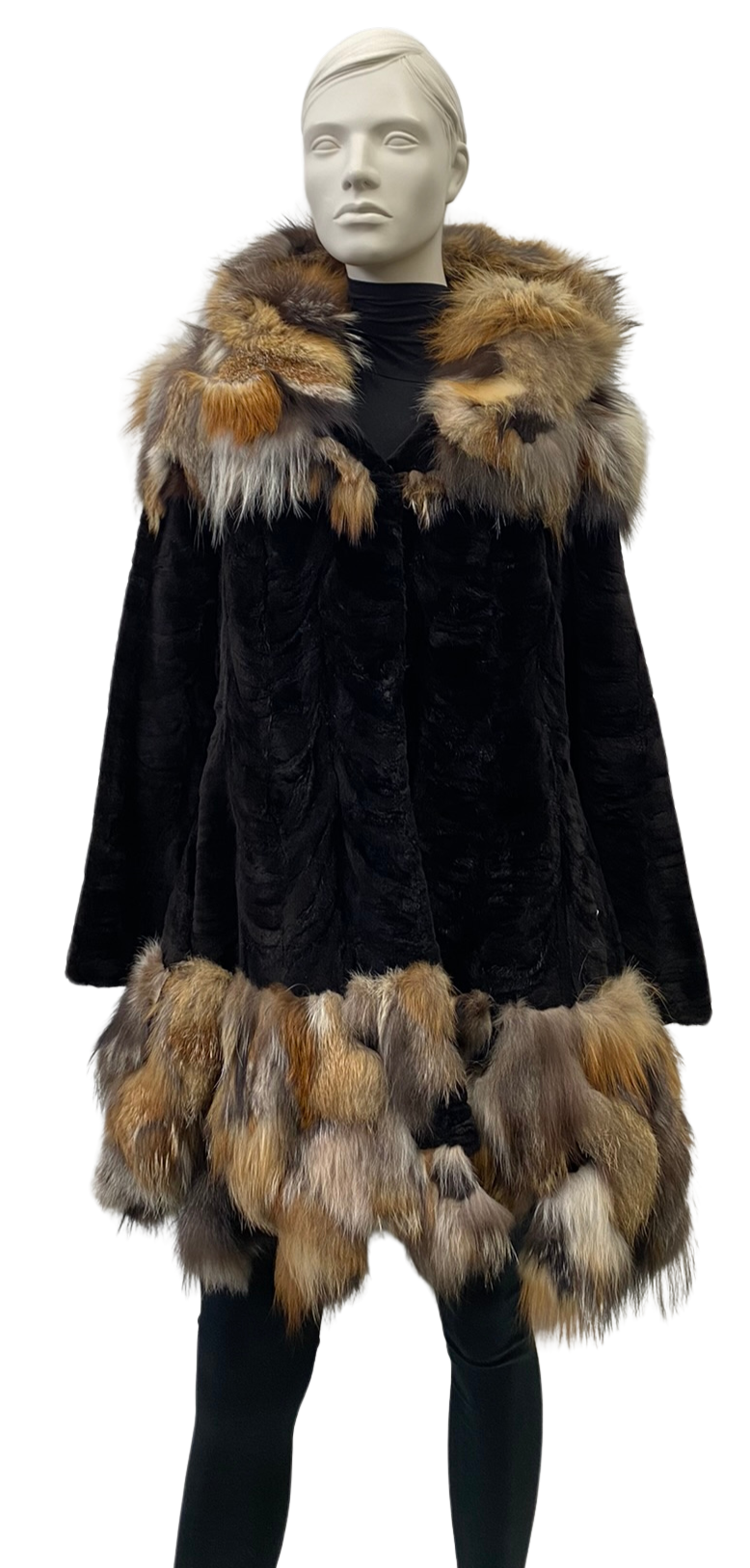 / Manteau de pattes de vison rasé noir et morceaux de renard – 8694
