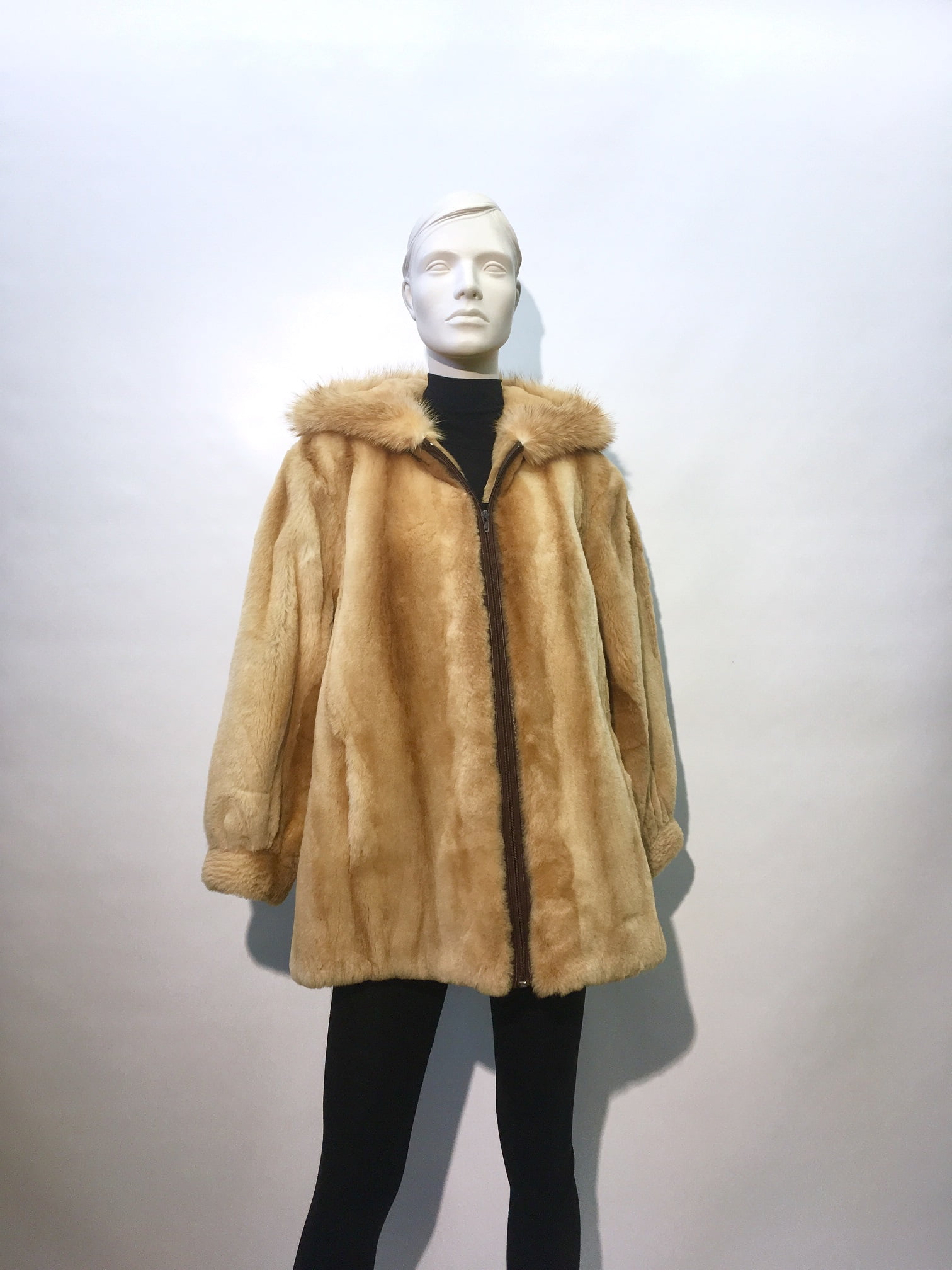 MANTEAU DE RATON LAVEUR ROUX RASÉ ET CAPUCHON – 7558 VENDU
