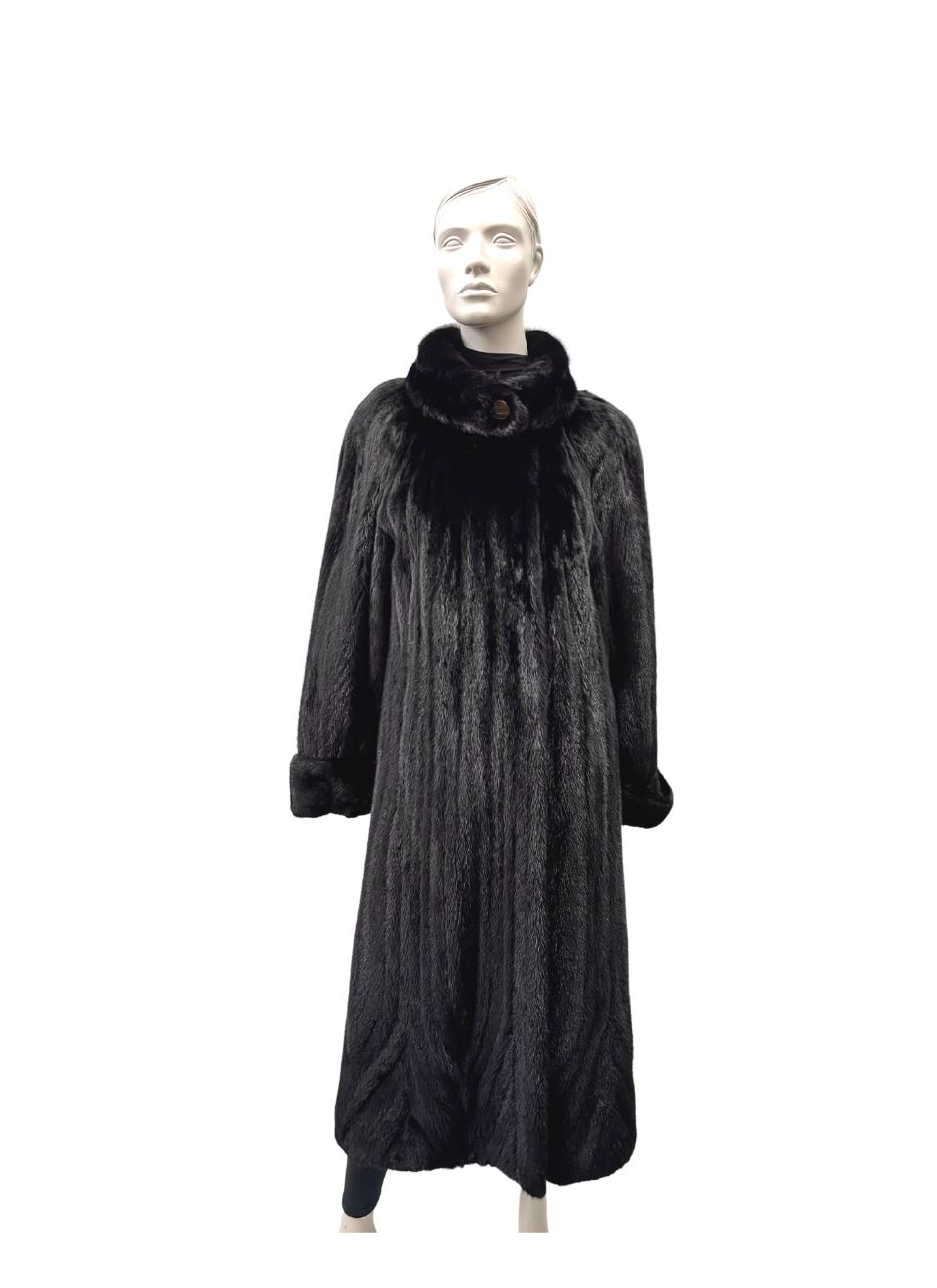 Manteau de vison femelle naturel avec motif à chevrons – 991244