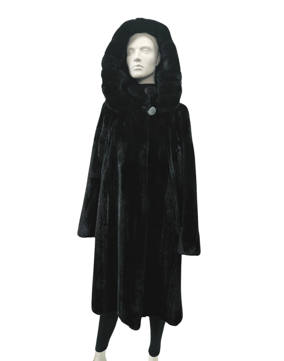 / Manteau de vison femelle noir et capuchon détachable – 8669