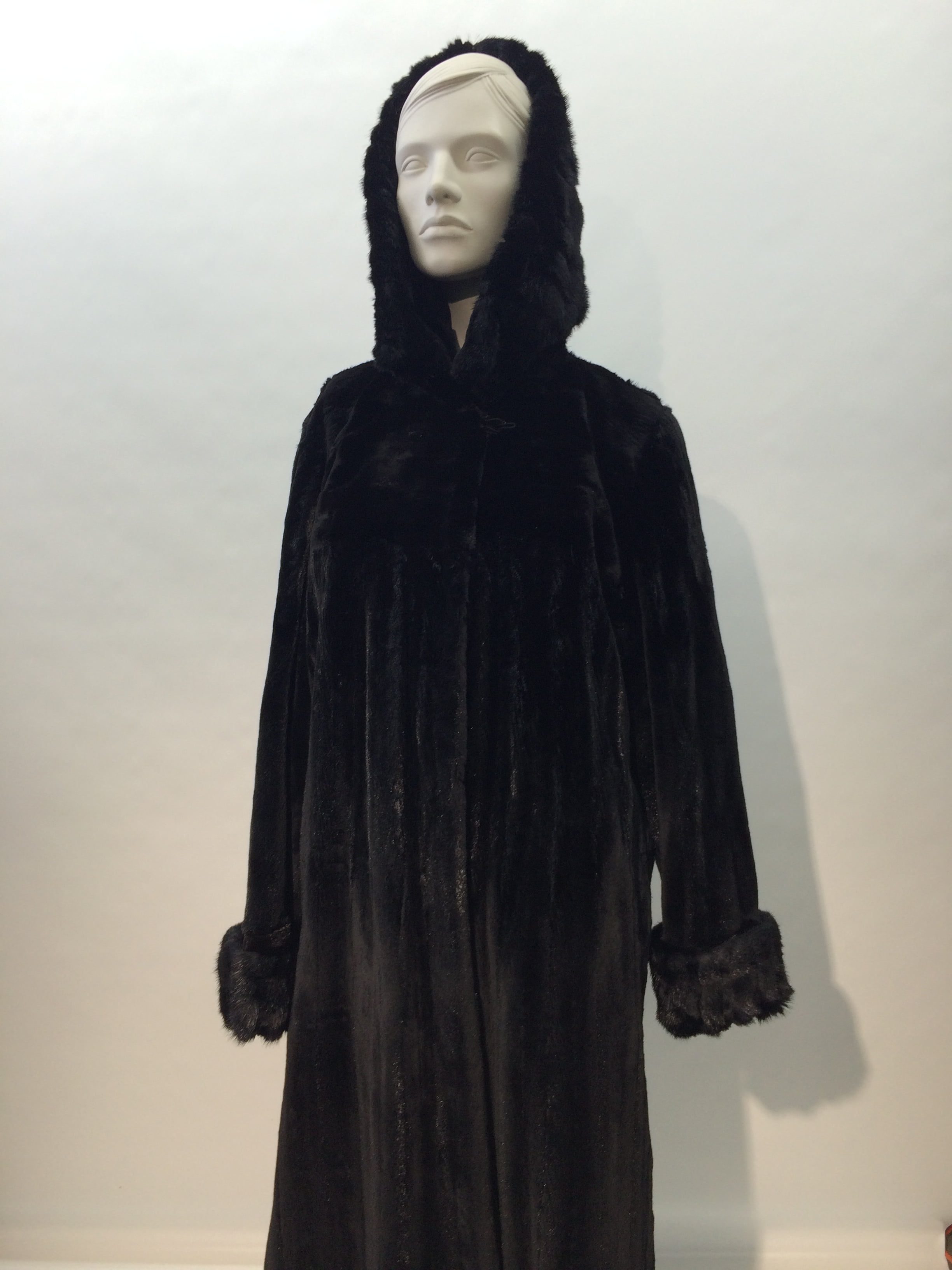 Manteau de vison femelle rasé teint noir long avec capuchon – 6967Grandeur: 14-16 ans