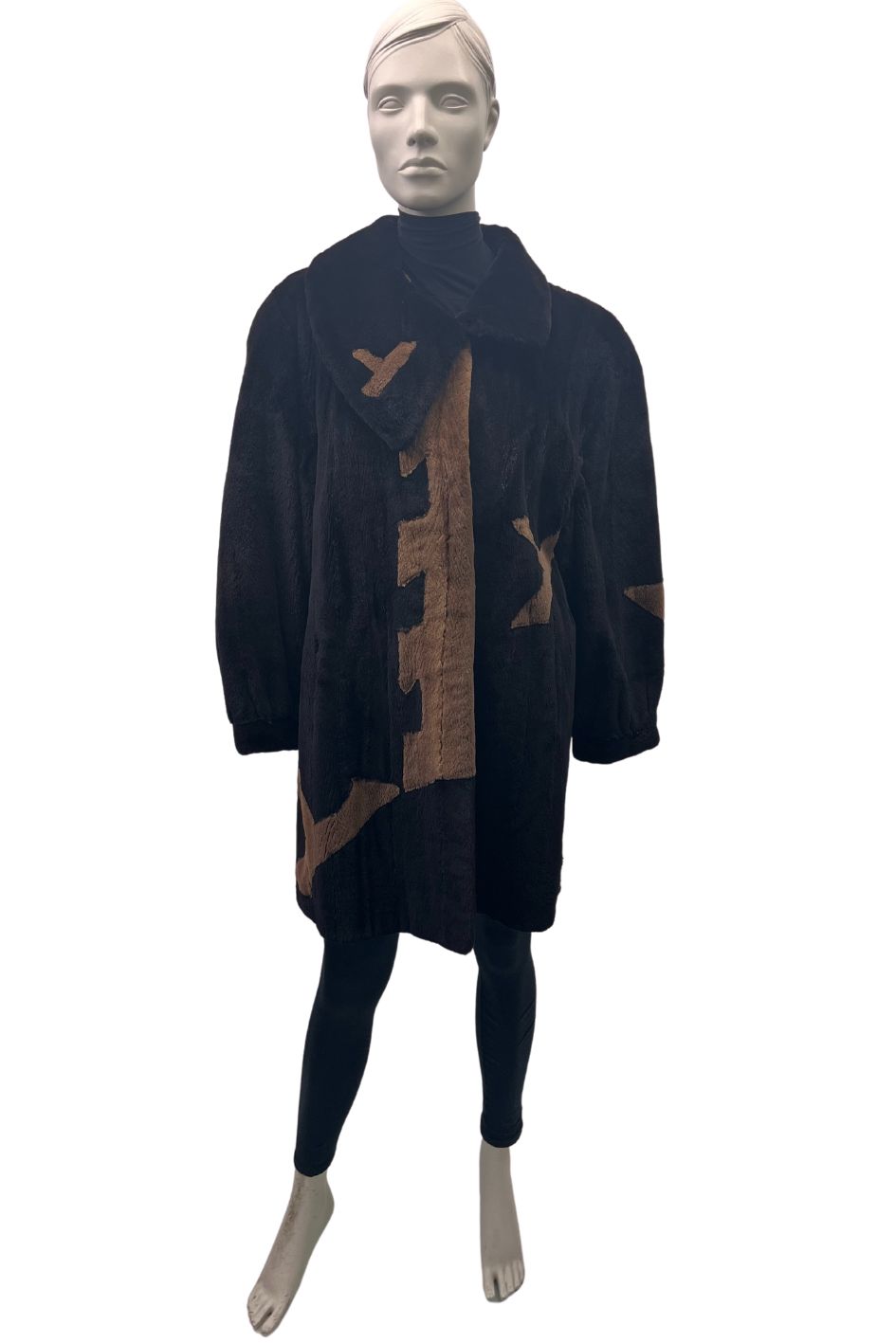 Manteau de vison rasé brun foncé dessins – 8482
