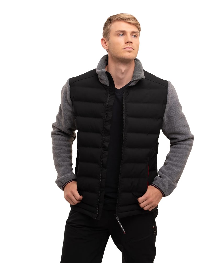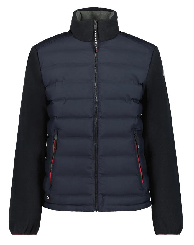 Le Luhta Ahonkulma est un vêtement polyvalent qui peut être porté comme couche supérieure lors des fraîches soirées d'été ou des journées sèches d'automne, ou comme couche intermédiaire sous une veste par mauvais temps ou par temps hivernal. La section médiane de la veste est faite d'un tissu coupe-vent et elle a un léger rembourrage. Les canaux horizontaux ont été collés au lieu d'être cousus, de sorte que le vent ne puisse pas pénétrer à travers les coutures. Le tissu a également un traitement de surface hydrofuge et anti-salissures, sans PFC. Les manches et le col de la veste sont faits d'une matière polaire délicieusement douce et confortable en plus d'offrir une bonne isolation thermique. Si vous oubliez vos gants, plongez simplement vos mains dans la chaleur des poches avant doublées.