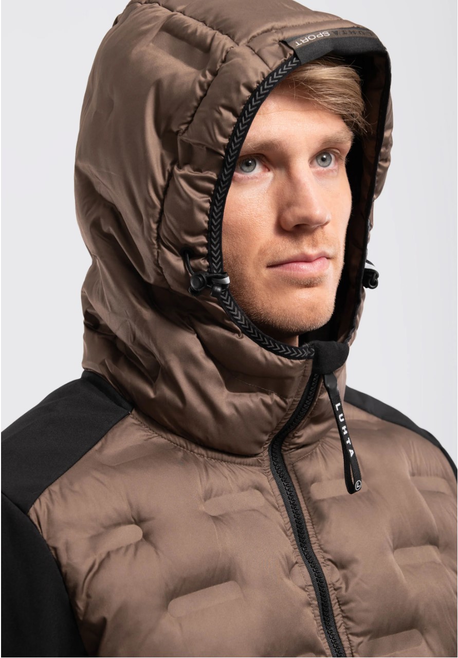 Veste softshell Luhta pour homme avec capuche, poignets et bas du manteau ajustables. Grâce à ses poches chauffe-mains doublées et sa protection contre les intempéries tout en étant confortablement flexible, cette veste est idéale pour les activités de plein air.